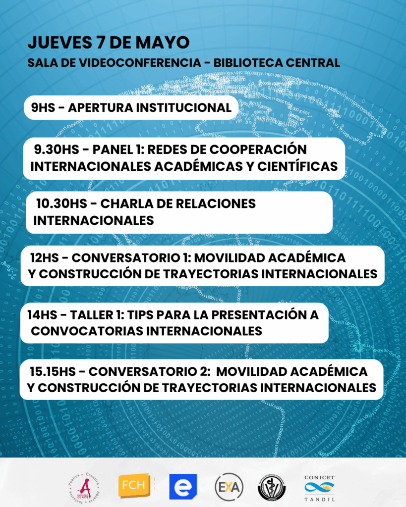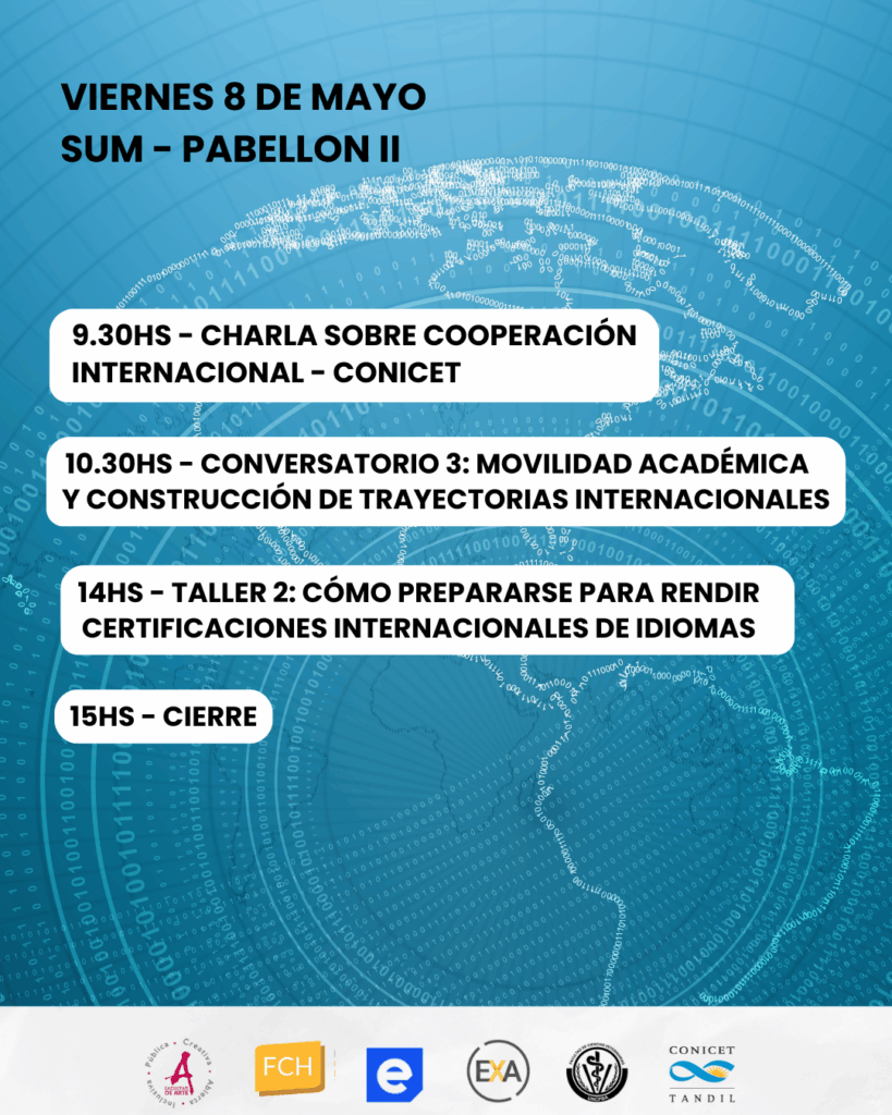 La Facultad de Ciencias Exactas, junto con la Facultad de Arte, la Facultad de Ciencias Económicas, la Facultad de Ciencias Humanas, Facultad de Ciencias Veterinarias y el Centro Científico Tecnológico CONICET (CCT Tandil), llevará adelante las Jornadas Internacionales 2026: Desafíos y herramientas de la internacionalización universitaria, que se realizarán los días 7 y 8 de mayo en el Campus Universitario de Tandil.