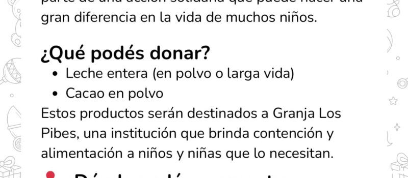 Les compartimos la iniciativa de Caminatas Tandil para colaborar con la Granja Los Pibes, una institución que brinda contención y alimentación a más de 80 niños y niñas que meriendan a diario. Allí se necesitan alrededor de 17 litros de leche por día.