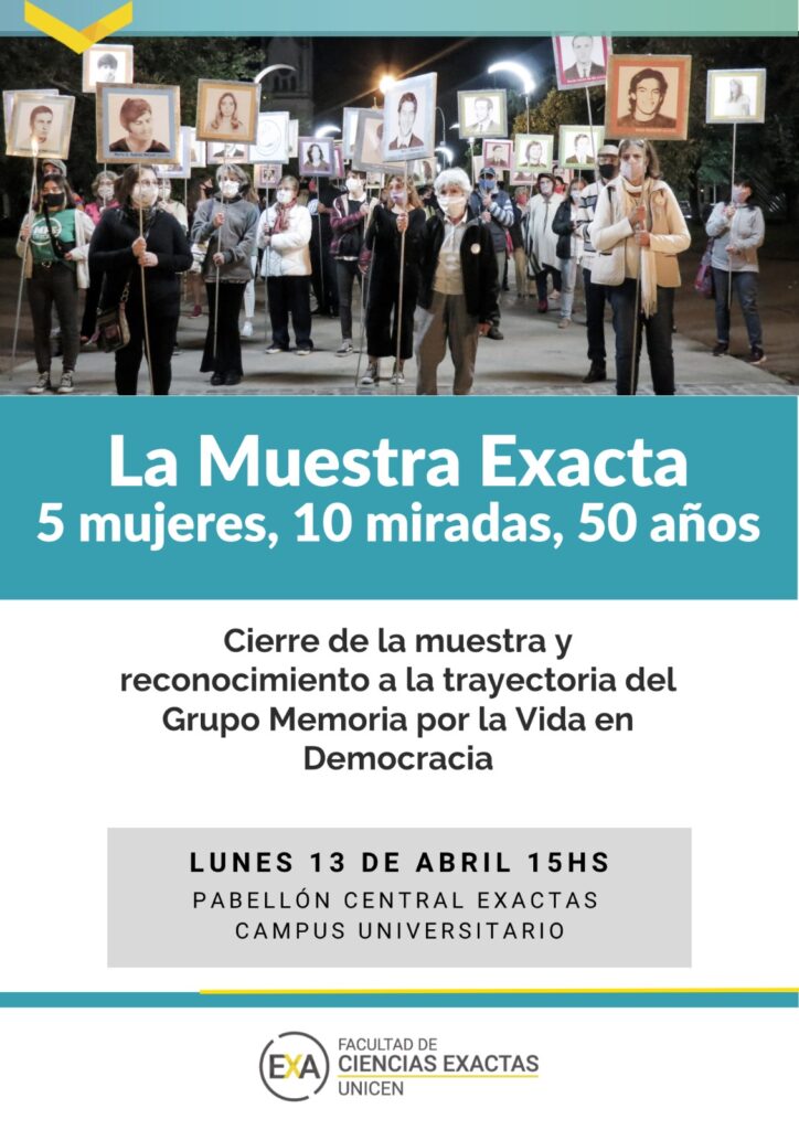 La Facultad de Ciencias Exactas invita a la comunidad al cierre de la muestra colectiva “5 mujeres, 10 miradas, 50 años”, que se realizará el próximo lunes 13 de abril a las 15 horas en el Pabellón Central.