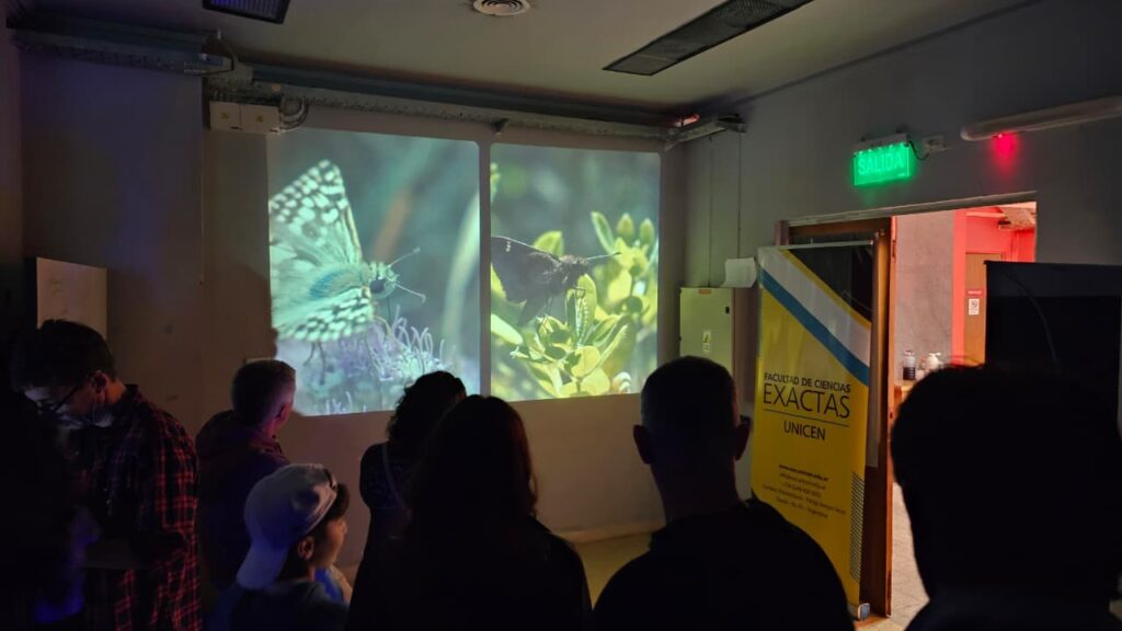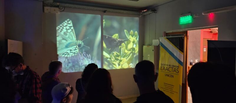 La instalación «Experiencia Inmersiva: Pastizal Serrano» invitó a descubrir la biodiversidad del sistema serrano a través de imágenes registradas por integrantes del Instituto Multidisciplinario sobre Ecosistemas y Desarrollo Sustentable. La propuesta combinó proyecciones de alta calidad, ambientación sonora y recursos visuales que permitieron a las y los asistentes “adentrarse” en el paisaje nativo de Tandil, reconociendo especies de flora y fauna características del pastizal serrano.