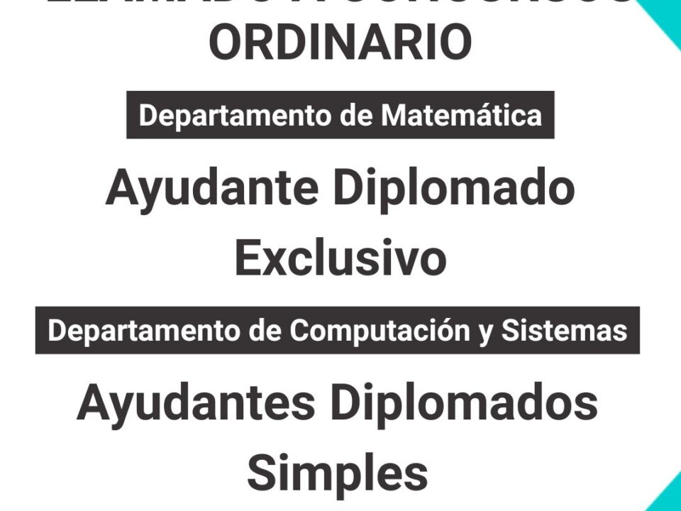 Ayudante Diplomado con dedicación Simple, para desempeñarse en los cursos presencial, semipresencial y virtual de IVU