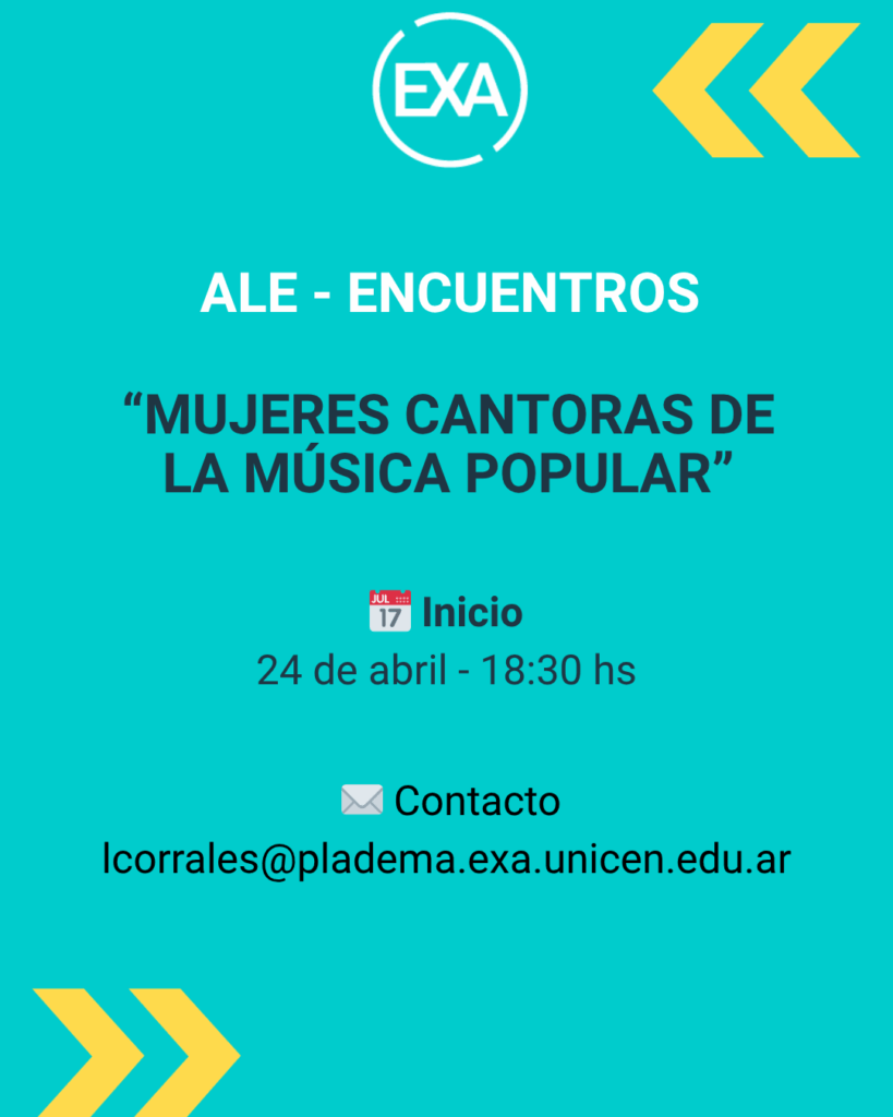 • “Mujeres cantoras de la música popular”, que tendrá lugar desde el 24 de abril a las 18:30 horas, en el marco del ciclo ALE–Encuentros.