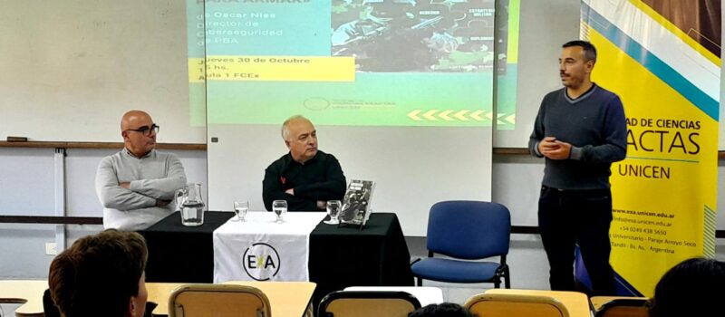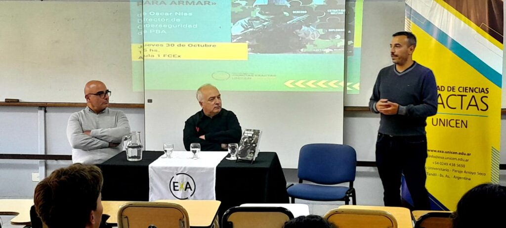 El encuentro se realizó el jueves 30 de octubre a las 15 h, en el Aula 1 de la Facultad de Ciencias Exactas, y propuso reflexionar sobre una pregunta central: ¿Cómo se defiende un país cuando sus fronteras ya no están en la tierra, sino en los datos?