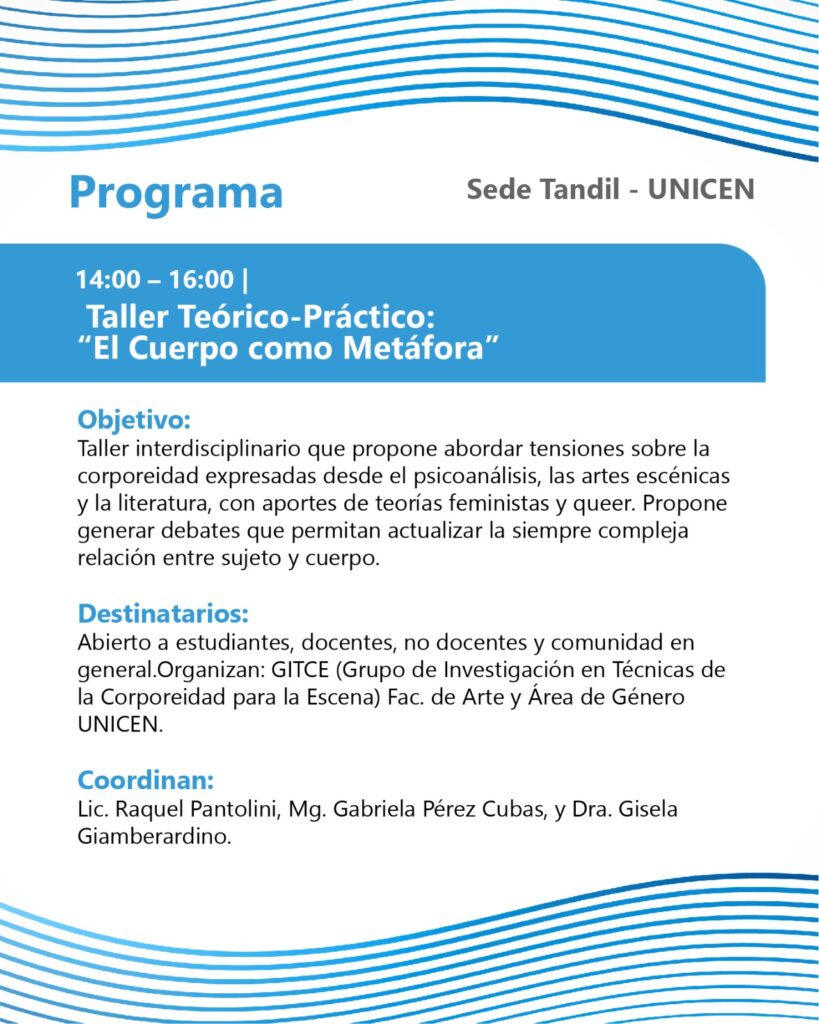 Organizan conjuntamente las Facultades de Arte, Ciencias Económicas, Humanas, Exactas y Veterinarias, junto con la Secretaría de Extensión del Rectorado de la UNICEN.